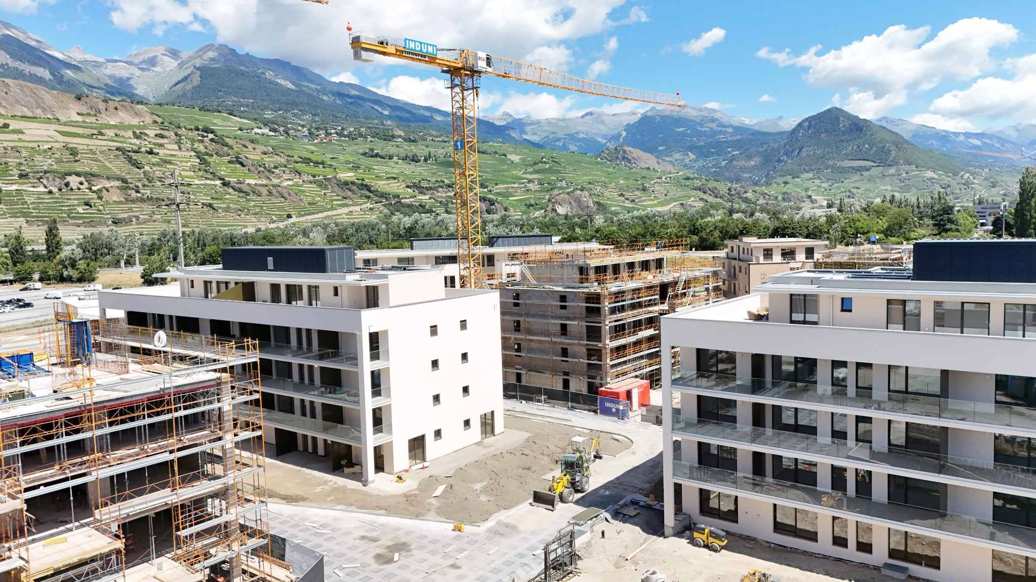 L’écoquartier « Greenparc » se situe dans le quartier de Champsec à Sion, à proximité de toutes les commodités et des transports publics.