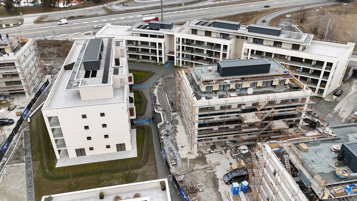 La réalisation des 6 premiers bâtiments est terminée. Les appartements disponibles peuvent être visités et livrés aux acquéreurs immédiatement. La vente de la deuxième phase bat son plein.